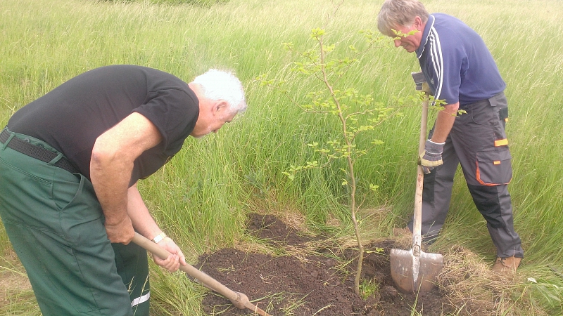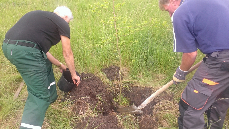 Stromky jako obvykle zajistil lion Němec. Přivezl i výýživný substrát na zasypání kořenovho balu, vodu na zalití a dokonce i špekáčky pro těžce pracující kolegy. Děkujeme.